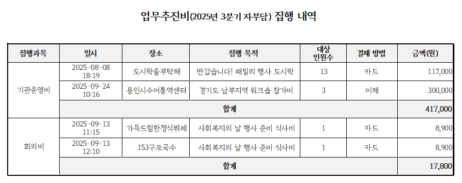 업무추진비(2025년 2분기 자부담) 집행 내역 공개